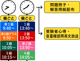 - 他の級の試験が行われていることもあるので会場を出るまで静かにしてください。