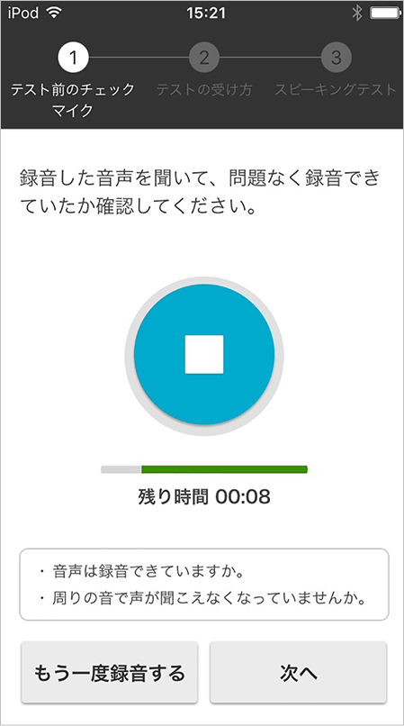 もし音声が聞き取れないなど、音量が小さかったときには、「もう一度録音する」ボタンで前の画面に戻って、再度録音をやり直してください。