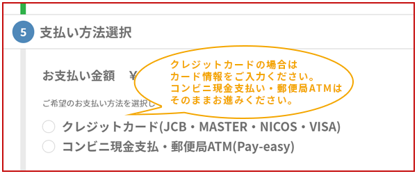 選択肢にチェックを入れると、支払いについてのご案内が表示されます。