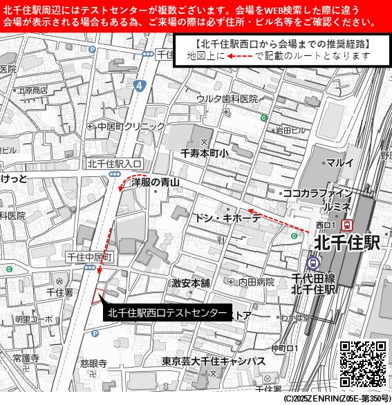 | 備考 | 【北千住駅西口から会場までの推奨経路】「北千住駅」西口より北千住駅前通りを直進、交差点「北千住駅入口」を左折し国道4号線沿いを直進すると会場へ到着いたします。 |