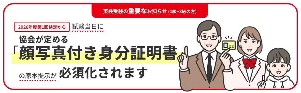 問題形式、難易度、級認定、英検CSEスコア、合格証明書の発行等はすべて英検(従来型)と同一です。また、英検(従来型)との併願も可能です。
